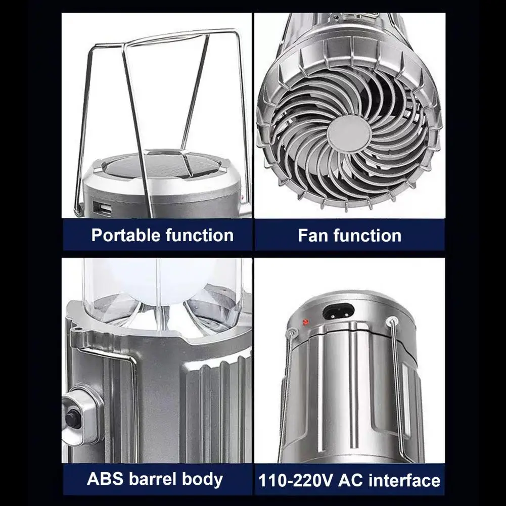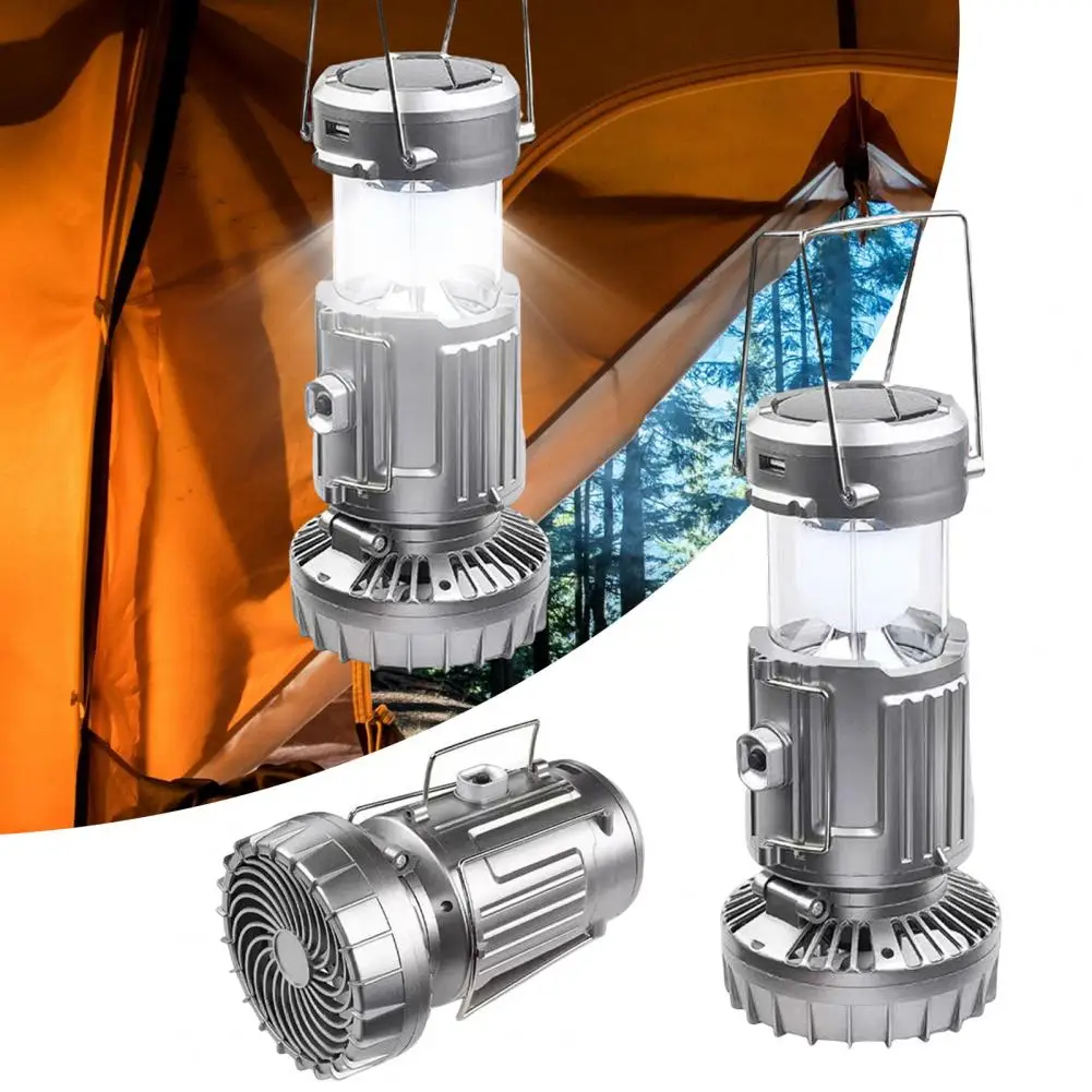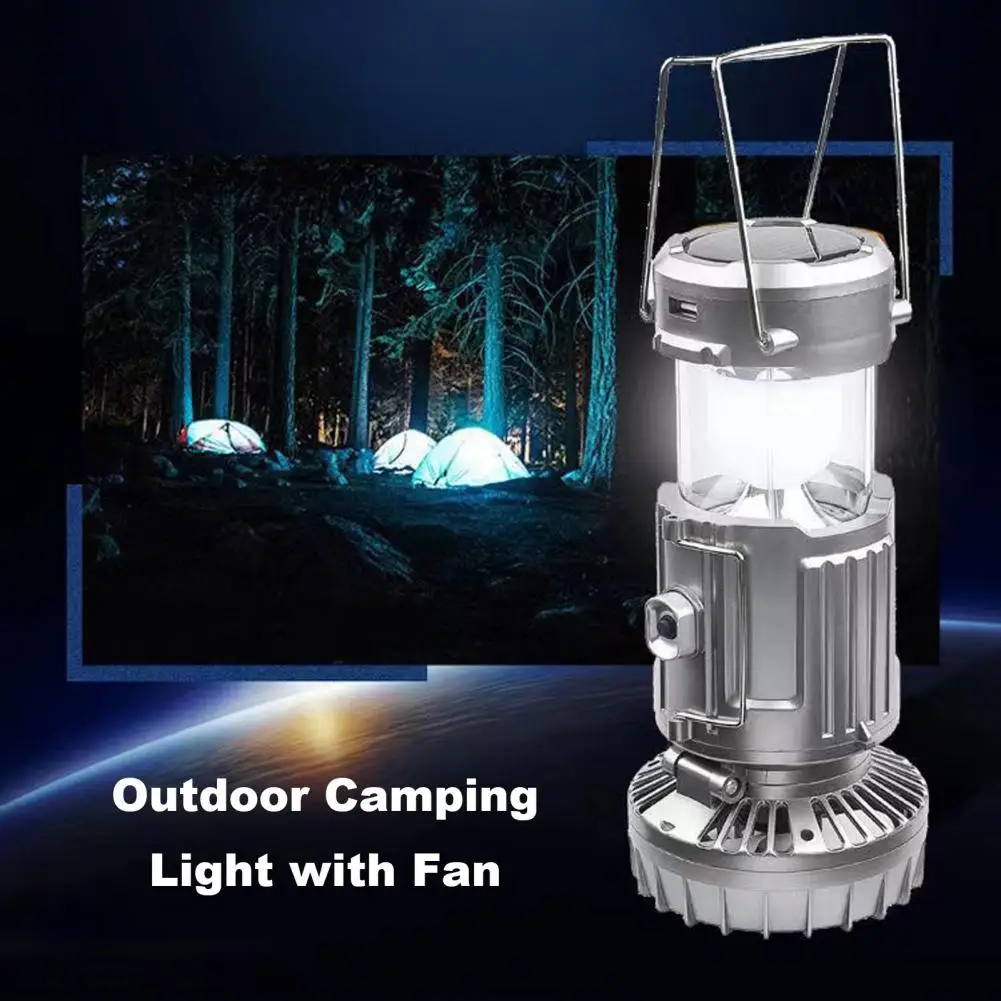 Efficient Ceiling Fan with LED Light: Designed for versatility, this solar camping light features a bright LED light and a ceiling fan. Whether used indoors or outdoors, it offers efficient air circulation and ample lighting, enhancing comfort and functionality in any setting.
