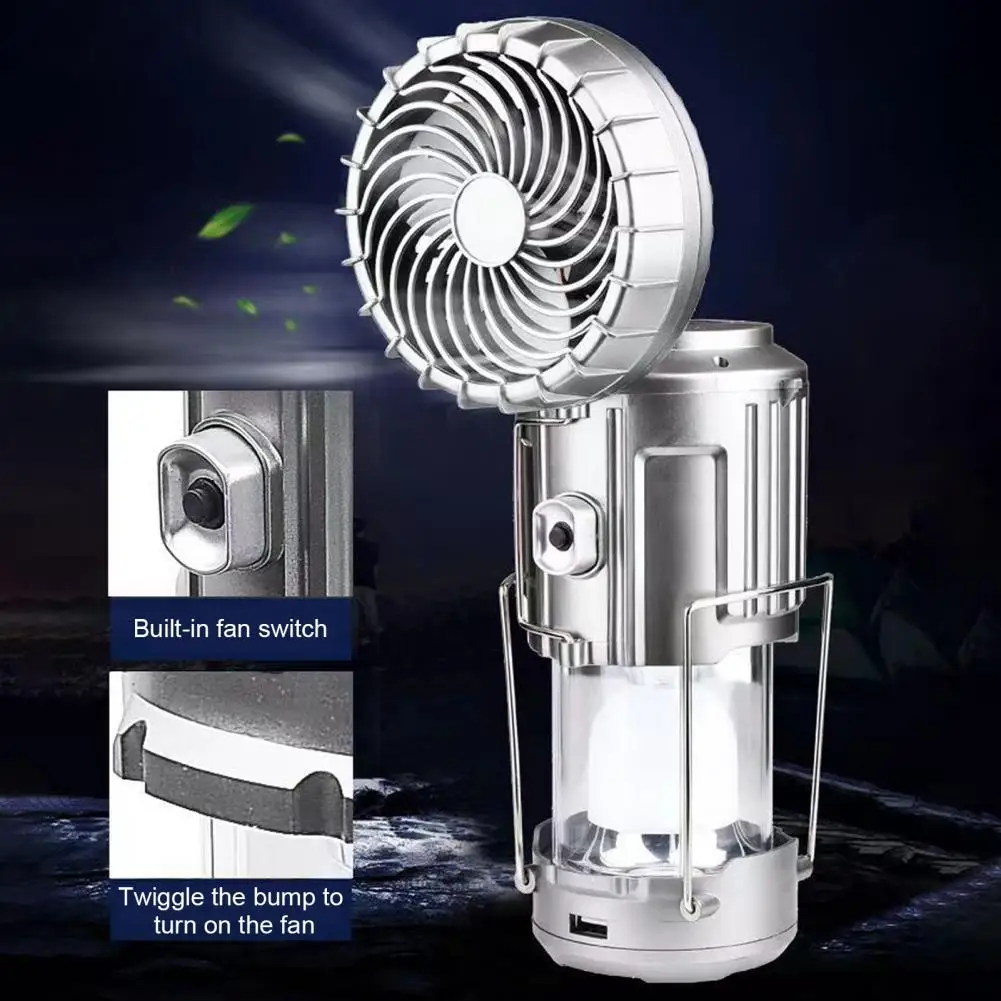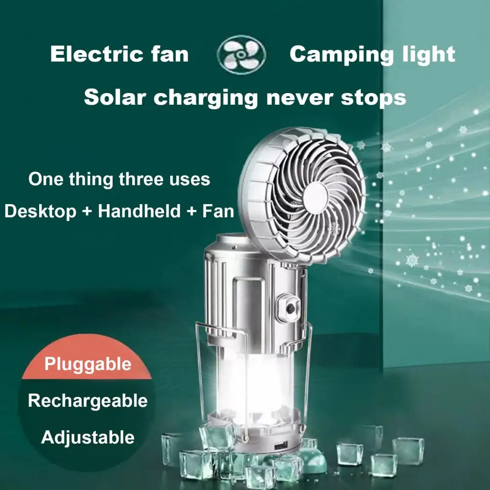 2-in-1 Fan Light Waterproof Solar LED Camping Lamp with Fan Portable Rechargeable Light Multifunctional Fan for Ourdoor Camping