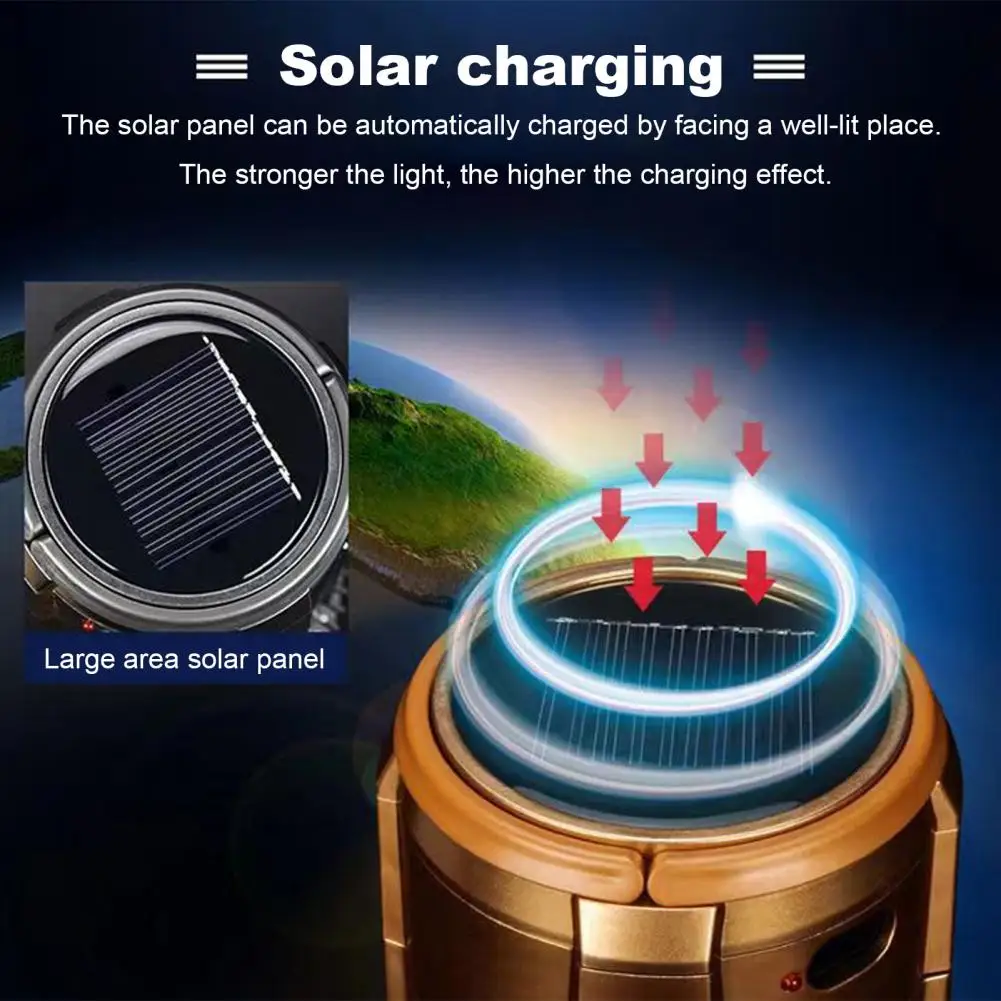Portable Solar LED Camping Light: Crafted with high-quality materials, this light features an advanced retractable design for easy operation. Simply pull up to illuminate and retract to turn off, ensuring wherever you go.